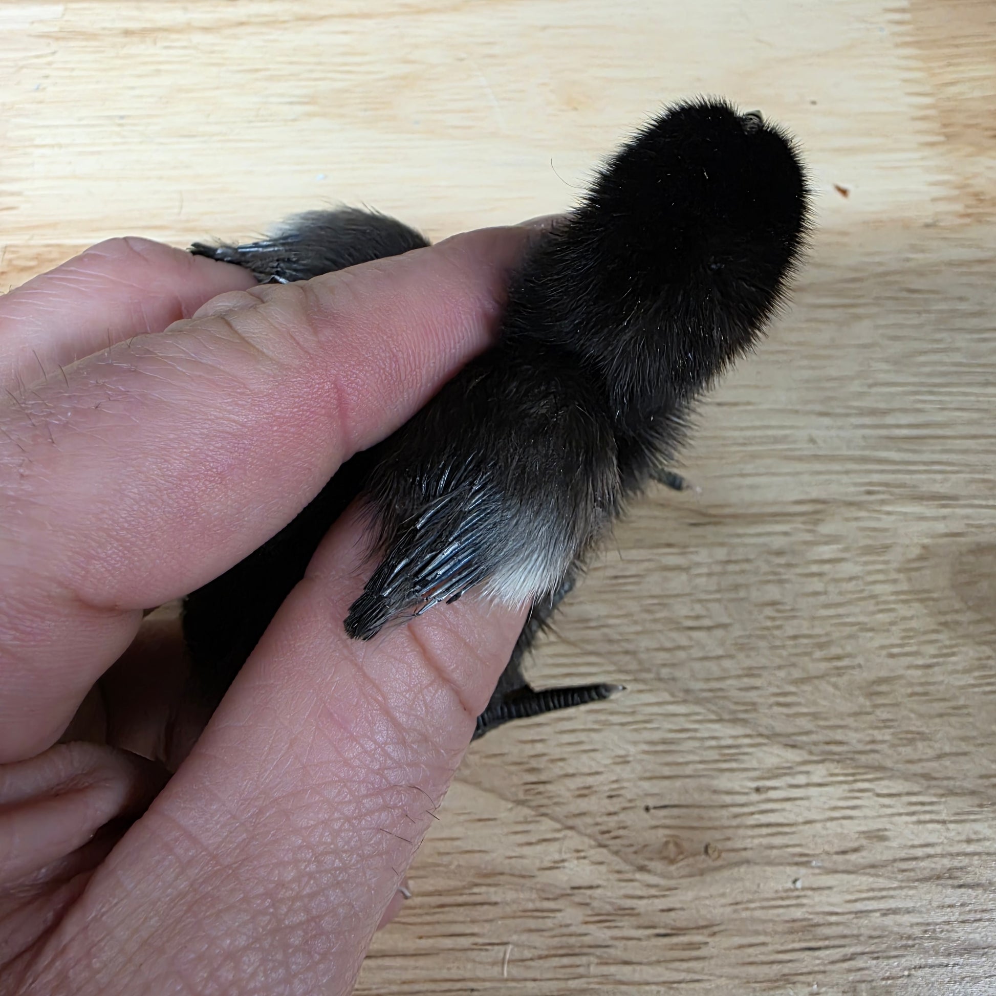 This listing is for 1 (one) Ayam Cemani Cull chick that is one day old. Straight Run.