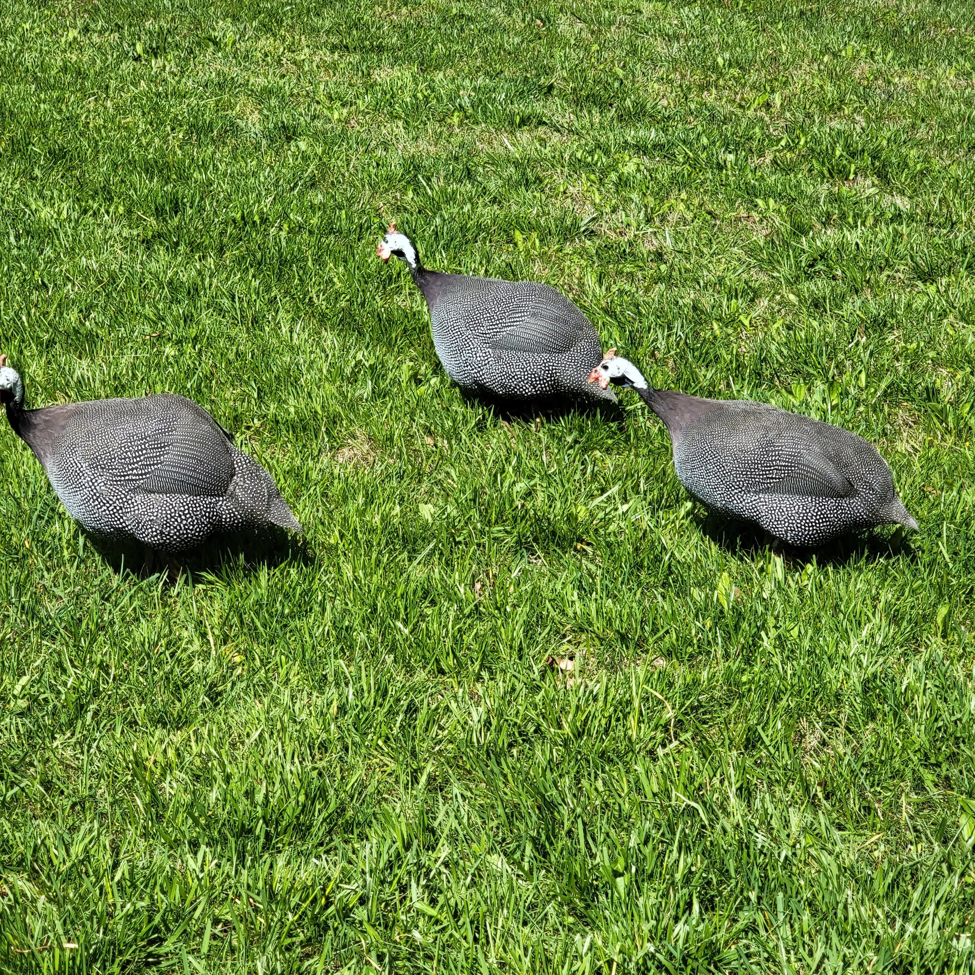 This listing is for 1 (one) Pearl Guinea Fowl Keet that is one day old. Straight Run. A keet is a chick.